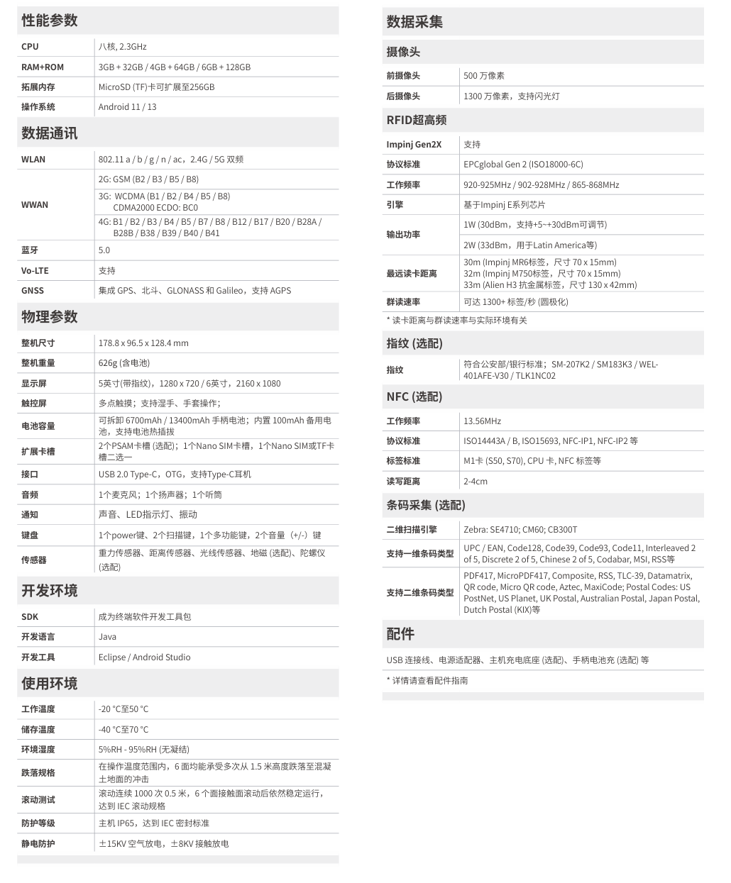 RFID模块集成:配备先进的RFID模块,支持UHF频段,读取速度快,识别距离远,可快速处理大量标签数据,显著提升工作效率。